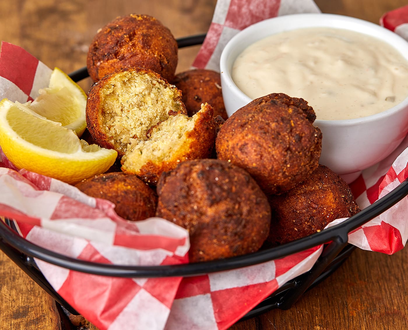 These Southern Hush Puppies are made with Loveless Cafe Cornmeal Breading, the same blend we use and serve in our Nashville kitchen. Inspired by Annie Loveless’s original recipe, they’re golden, crispy, and full of that classic down-home flavor that’s been a Loveless Cafe favorite for decades.
