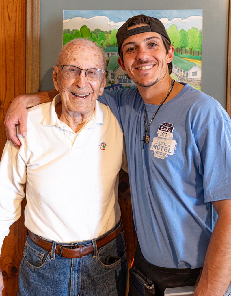 At 101 years old, Stoby has spent a lifetime in Tennessee. and many of those years gathered around a table at Loveless. For the past five years, he’s been served by Chaz, and somewhere between the coffee refills and biscuit baskets, their connection became more than service. It became friendship.